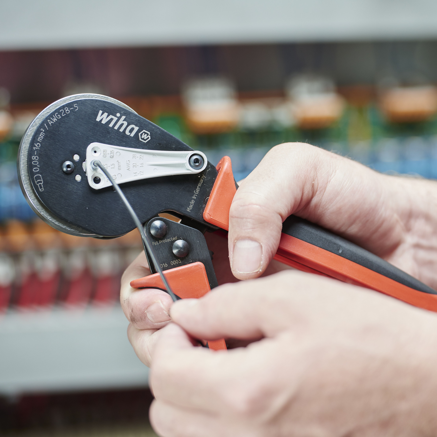 Conventional use of crimping pliers poses a risk that wire-end sleeves will snag in the pliers or be crimped incorrectly. These automatic crimping pliers with hex crimping can eliminate unnecessary cable and wire-end sleeve waste. With a wide crimping range between 0.08 and 16 mm², they conveniently combine two crimping pliers in a single tool. The crimping pliers thus cover most applications. The hexagonal crimping prevents small wire-end sleeves from snagging. The feed also provides process safety by preventing the plastic cover from being crimped. Thanks to its automated crimp function, the pliers are suitable for empty sleeves (up to 16 mm²) and twin sleeves (up to 10 mm²). The elastic, impact-cushioning plastic handles guarantee comfortable, fatigue-free work. An integrated lever ensures that the crimping process can be stopped manually at any time.