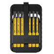 If too much force is transferred during fastening, the material may be damaged. The yellow Power slimBits were designed specifically for use with the new speedE® II e-screwdriver. Thanks to the differentiation between red and yellow slimBits, it can be seen at first glance which force level the speedE® II should be operated at to prevent material damage. The blade diameter is often too large in conventional electrician's screwdrivers to reach low-lying screws. However, removing insulation is not permitted and also compromises the user's safety. Protective insulation has been integrated into the blade with the Wiha slimTECHNOLOGY specially developed for electric applications, thus ensuring blades which are up to 33% slimmer. This means low-lying screw and spring elements can also be easily reached with the Power slimBits. The insulated Power slimBits undergo individual piece testing as per the international IEC 60900 standard, thus providing users with a tool to work safely on live parts up to 1,000 V AC. In addition, the Power slimBits are stored in a smart bit box that provides an optimal overview of the screw profiles. The Power slimBits are compatible with all handles in the ElectricVario Family.