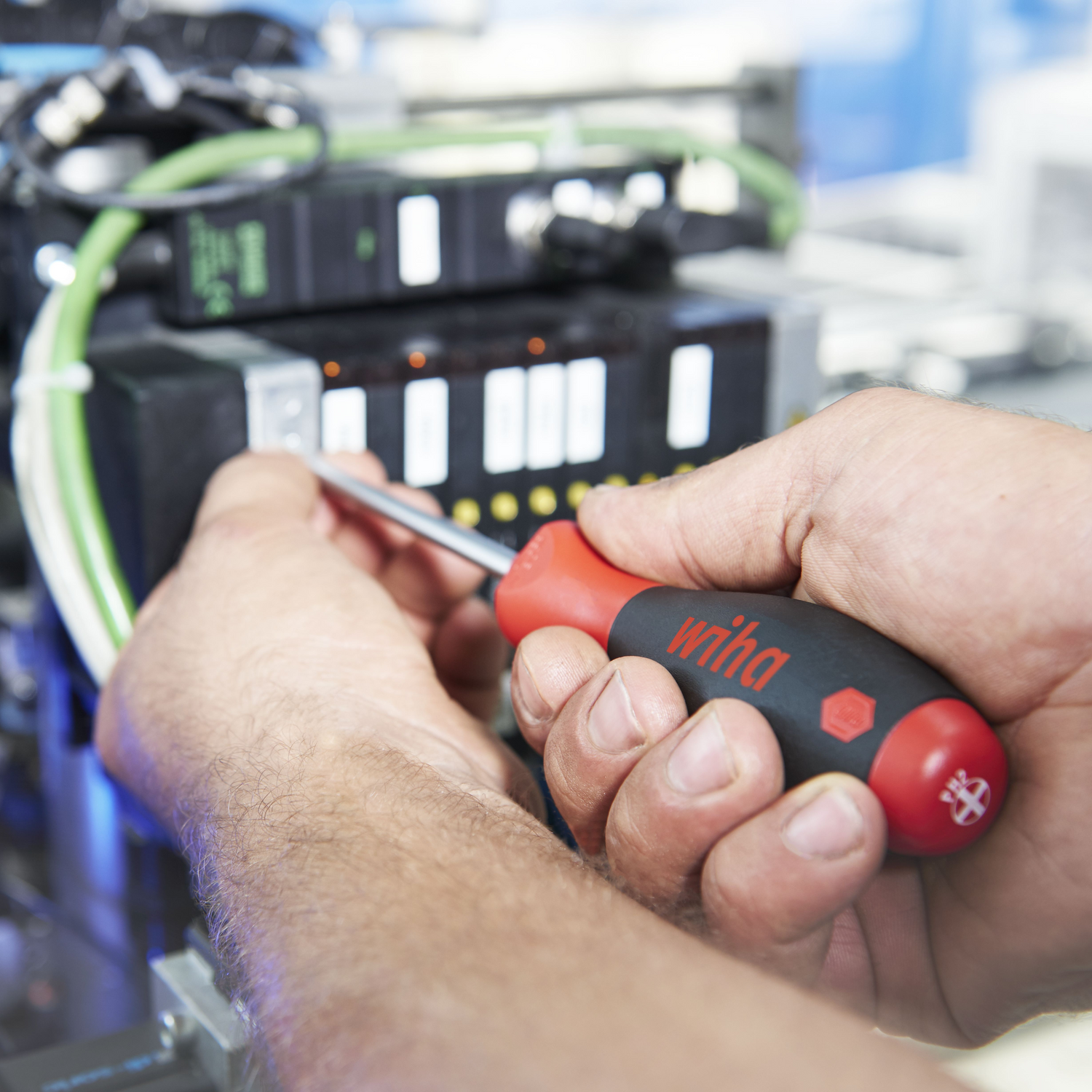 Fastening screws by hand causes considerable strain on wrists and muscles in the long term. The highly ergonomically shaped SoftFinish® screwdriver provides a remedy, ensuring optimal transmission of hand force. The long, slender handle sizes can be used to fasten small screws quickly and firmly. There are also large handle sizes to fasten large screws which can be used to apply greater torques. The various handle sizes have also been matched to the consistently same-sized hand of screw-fastening professionals. The roll-off protection and screw symbol printed on the handle end ensure users work efficiently. Thanks to its optimum grip, the SoftFinish® screwdriver is particularly suitable for applications in dry environments. The position of the soft and hard zones on the handle also supports the perfect grip for quick and powerful turning.