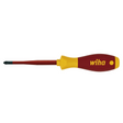 Fastening screws by hand causes considerable strain on wrists and muscles in the long term. The highly ergonomically shaped SoftFinish® screwdriver provides a remedy, ensuring optimal transmission of hand force. The long, slender handle sizes can be used to fasten small screws quickly and firmly. There are also large handle sizes to fasten large screws which can be used to apply greater torques. The various handle sizes have also been matched to the consistently same-sized hand of screw-fastening professionals. The roll-off protection and screw symbol printed on the handle end ensure users work efficiently. Protective insulation has been integrated into the blade with the Wiha slimTECHNOLOGY specially developed for electric applications, thus ensuring blades which are up to 33% slimmer. This means low-lying screw and spring elements can also be easily reached. These insulated screwdrivers undergo routine individual piece testing as per the international IEC 60900 standard, as a result * providing users with a tool to work safely on live parts up to 1,000 V AC.