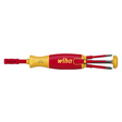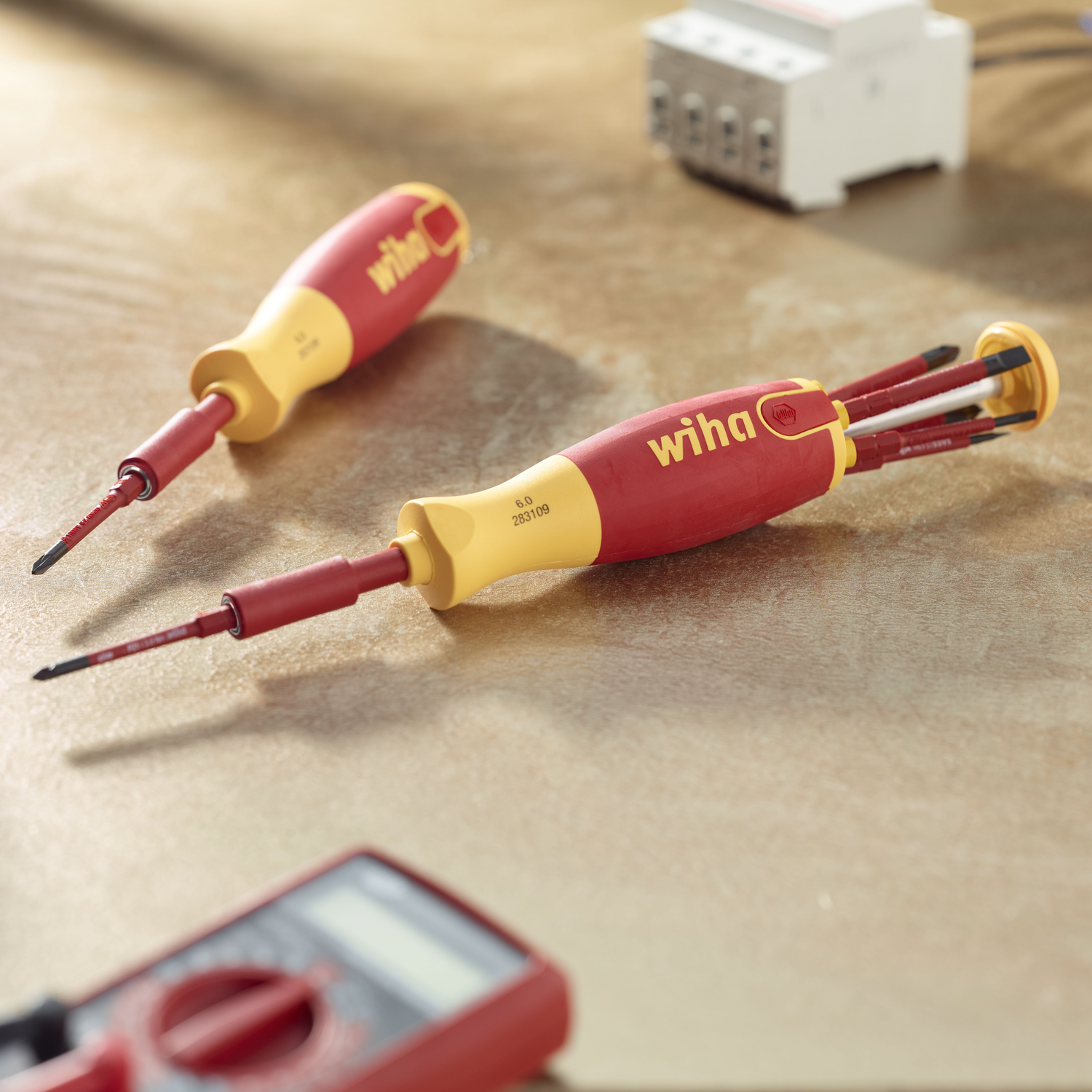 The screwdriver with the bit magazine LiftUp electric is the ideal companion for every electrician out on a job. The bit depot hidden in the handle provides space for 6 standard slimBits and extends out of the magazine at the press of a button, making it easy to take out the bits. The time-tested ClicFix holder grips all bits securely and reliably locks them into place. This technology transforms the bit magazine into an all-purpose screwdriver. The magazine bit holder also ensures maximum safety. Both the magazine bit holder and the slimBits that it contains are certified to the international IEC 60900 standard. The slender, 75 mm slimBits ensure perfect access to low-lying screws or spring clips thanks to protective insulation fully integrated into bits in the front section. The twistable cap brings a further advantage, ensuring convenient handling.StandardManufactured acc. to IEC 60900.Note6 mm slimBits only to be used in the slimVario® bit holder and slimTorque VDE bit holder (VDE torque system). Not for use with bit styles C 6.3 and E 6.3.ApplicationSuitable for controlled fastening for live parts up to 1,000 V AC, especially for portable use.