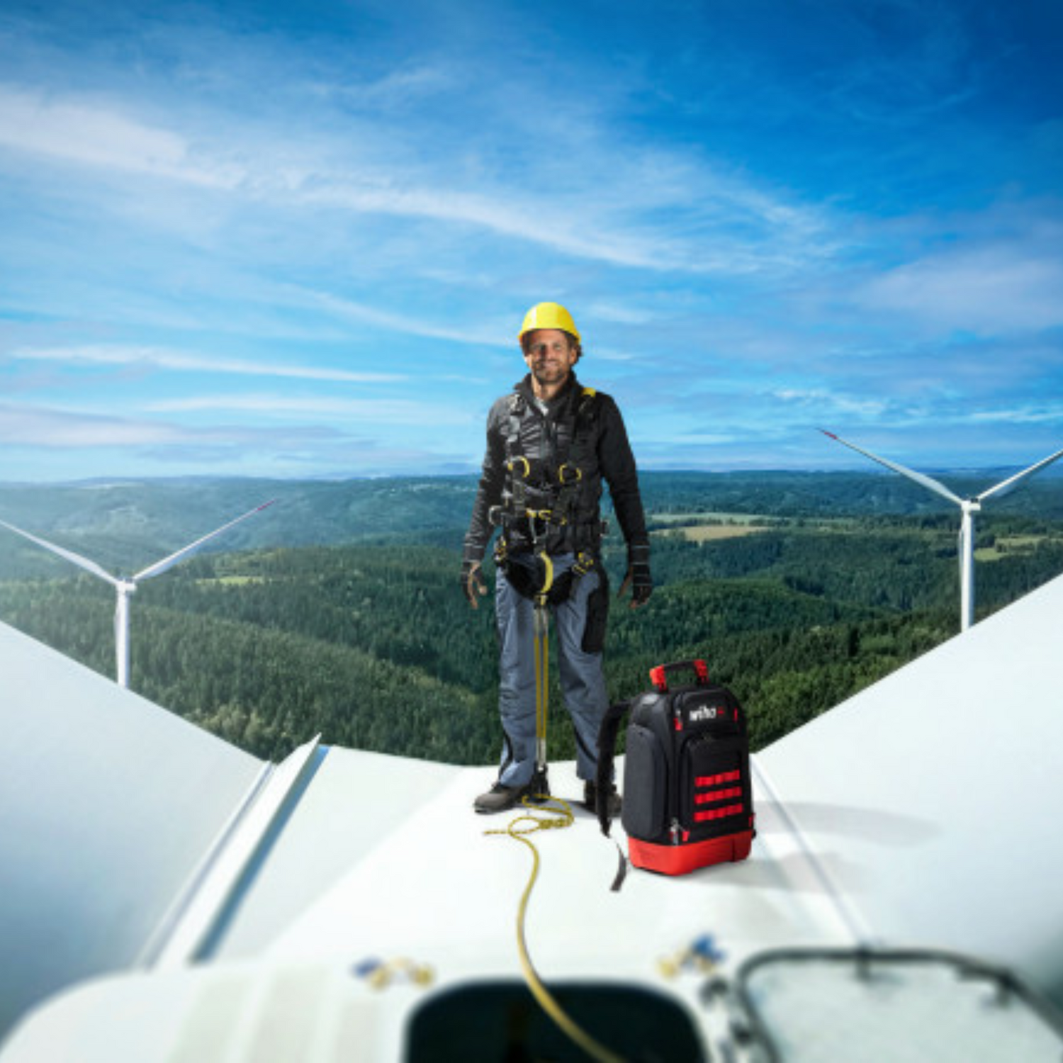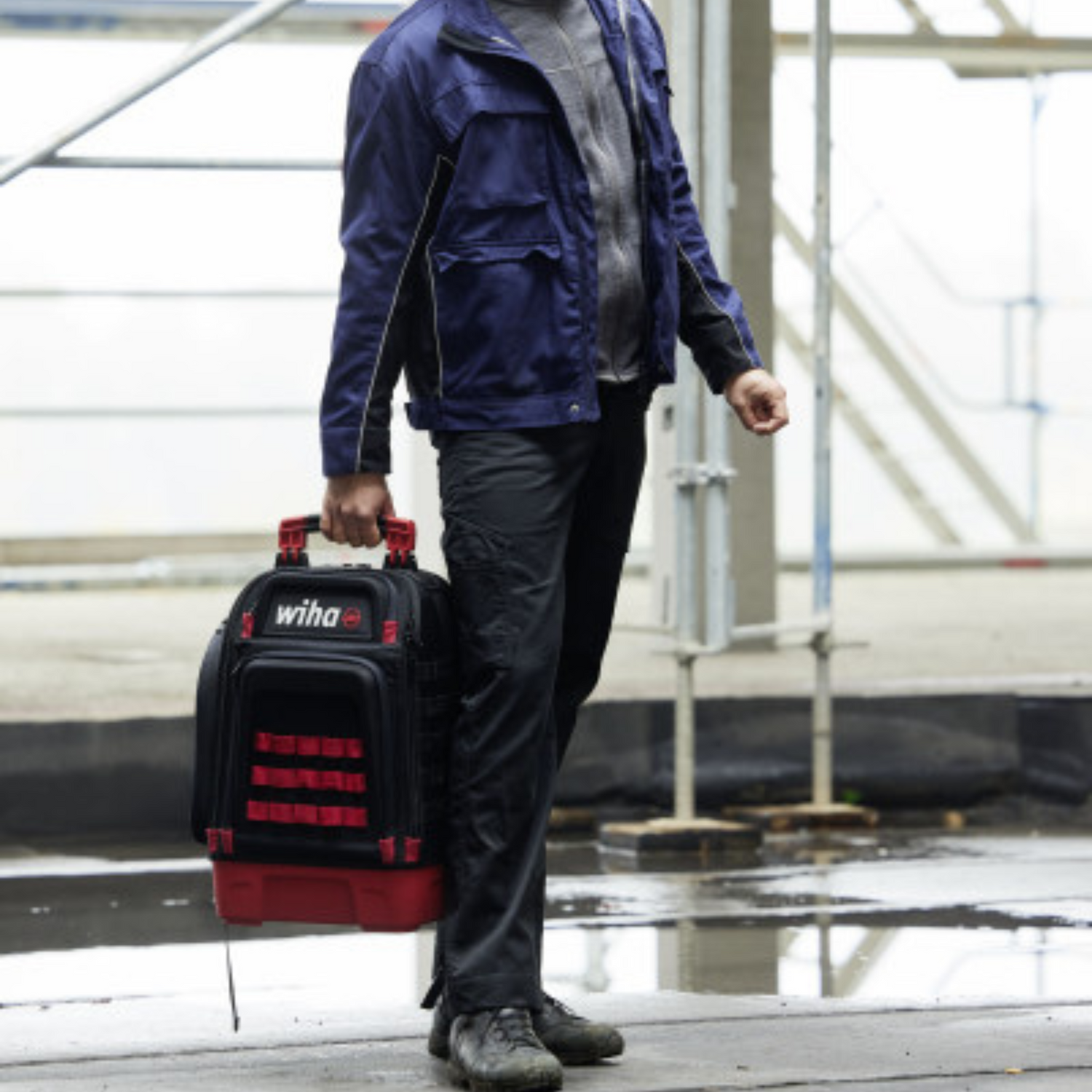 When you have your hands full of work, you need two free hands. The electrician's backpack from Wiha is the perfect solution and allows limitless freedom with its protected design. The sophisticated compartment system ensures clearly structured organization and easy removal of the tools. When the backpack is open 1/3 it additionally offers practical quick access options. The total of 77 storage and 30 flexible attachment possibilities allow individualised configuration options with additional tools and accessories. The robust base tray of the backpack with its stable foothold makes sure that the backpack has a firm stand when open. In addition, it comes in handy in wet and dirty work environments thanks to its robust material. Moreover, the tool backpack is not only your workshop on the go but also a mobile office. A laptop and office compartment allows the secure and clean storage of your laptop, cell phone and documents, separate from the tools. Comfortable carrying is ensured by the adjustable breathable carrying elements as well as robust non-slip handle. It fulfills highest quality demands thanks to its high-quality surface material 1680D and YKK zippers. For private or sensitive objects there is room in several separate padded compartments. For all types of fastening work, the backpack not only contains our ten-part L-key set, but also six ergonomic screwdrivers and the compact PocketMax®, all of which are safe and reliable thanks to the being VDE certified. Safety is also provided by the insulated combination and needle nose pliers as well as the diagonal cutter. All holding, feeding and cutting tasks can therefore be carried out. The Wiha spirit level, the electrician's folding ruler, and insulating Multitool complete the range of tools for electricians. Finally, the backpack can be expanded individually thanks to the universal MOLLE system. The handy loops can be equipped with plenty of accessories found online for enhancing and expanding the backpack (not included in the delivery). With the professional tool backpack and its mobile set of high quality Wiha tools you always have everything you need by your side!